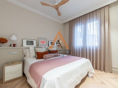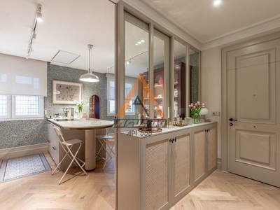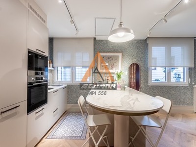 Venta de maravillosa vivienda en la zona de Abando, junto a la plaza circular, la vivienda está reformada con materiales de calidad superior, ventanas cambiadas, fontanería, suelo en espiga de madera de roble, calefacción consuelo radiante y agua caliente con gas individual. Aire acondicionado. La vivienda es exterior, se distribuye en un bonita Hall, a través del que se accede a la cocina acristalada y salón-comedor con mirador. Dispone de tres habitaciones ( una de ellas con balcón exterior), cocina totalmente reformada con electrodomésticos de alta gama y con una península con zona de desayuno, Hay una zona de lavandería. El edificio es de 1985, estructura de hormigón y fachada reformada, tiene dos ascensores y plataforma elevadora. Servicio de portería 24 horas durante toda la semana. Como valor añadido, cuenta la propiedad con un estupendo trastero y garaje con acceso directo en el edificio ( No están incluidos en el precio)